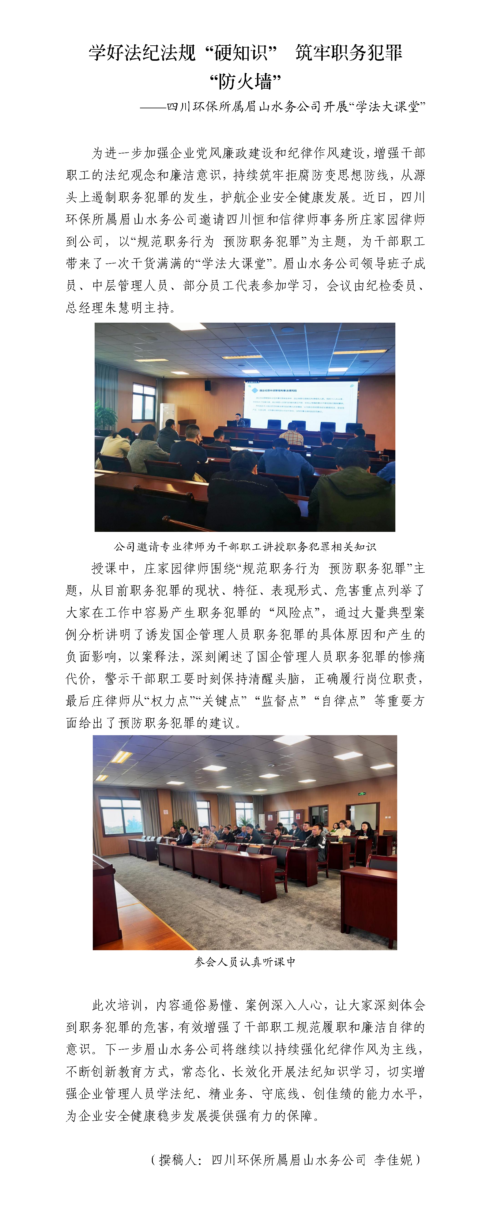 学好法纪法规“硬知识” 筑牢职务犯罪“防火墙”