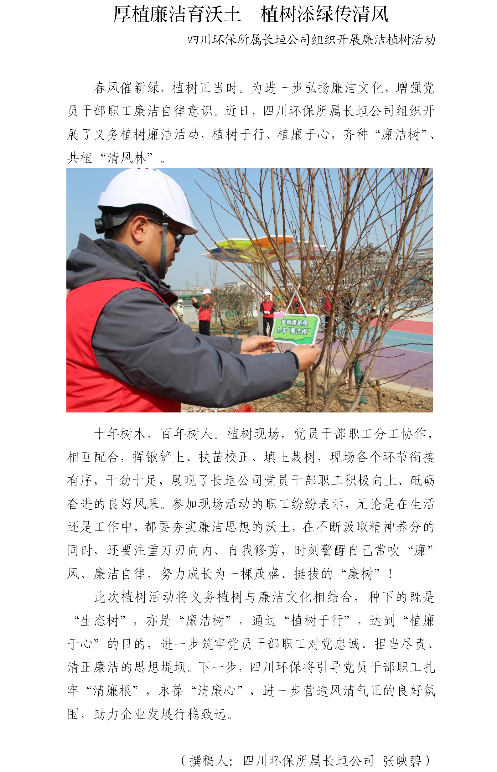 厚植廉洁育沃土 植树添绿传清风