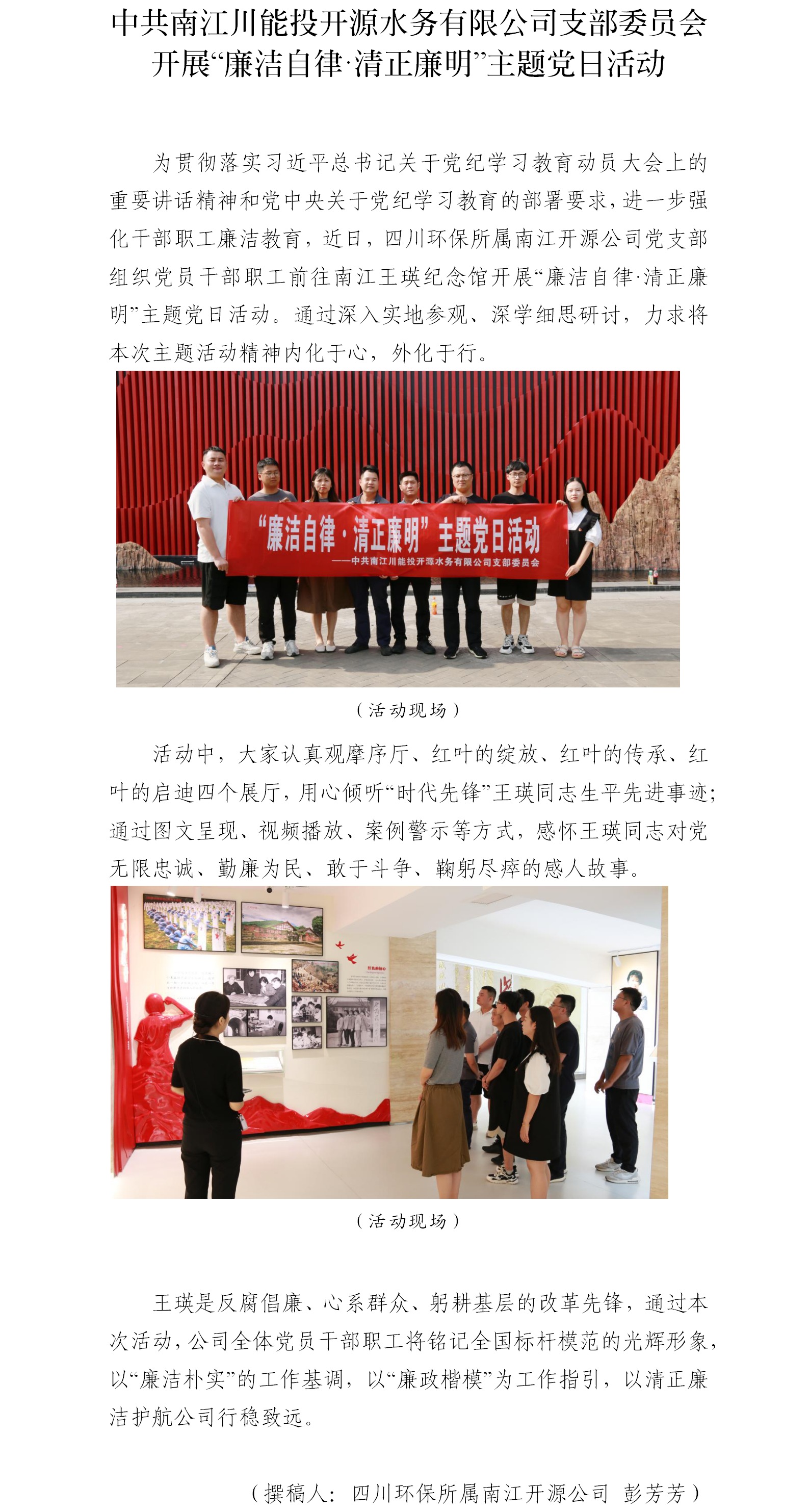 中共南江川能投开源水务有限公司支部委员会 开展“廉洁自律·清正廉明”主题党日活动
