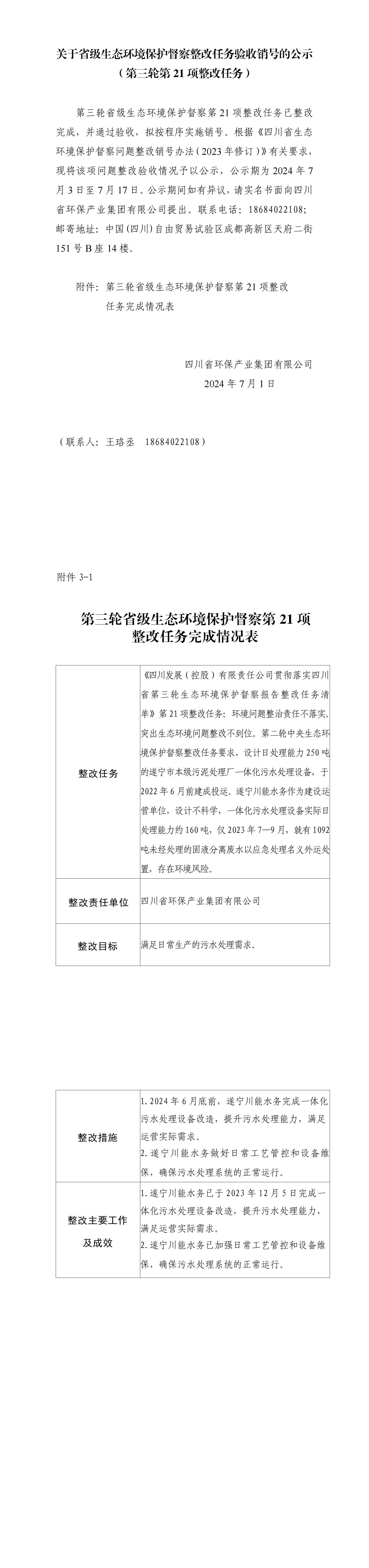 关于省级生态环境保护督察整改任务验收销号的公示 (第三轮第21项整改任务)