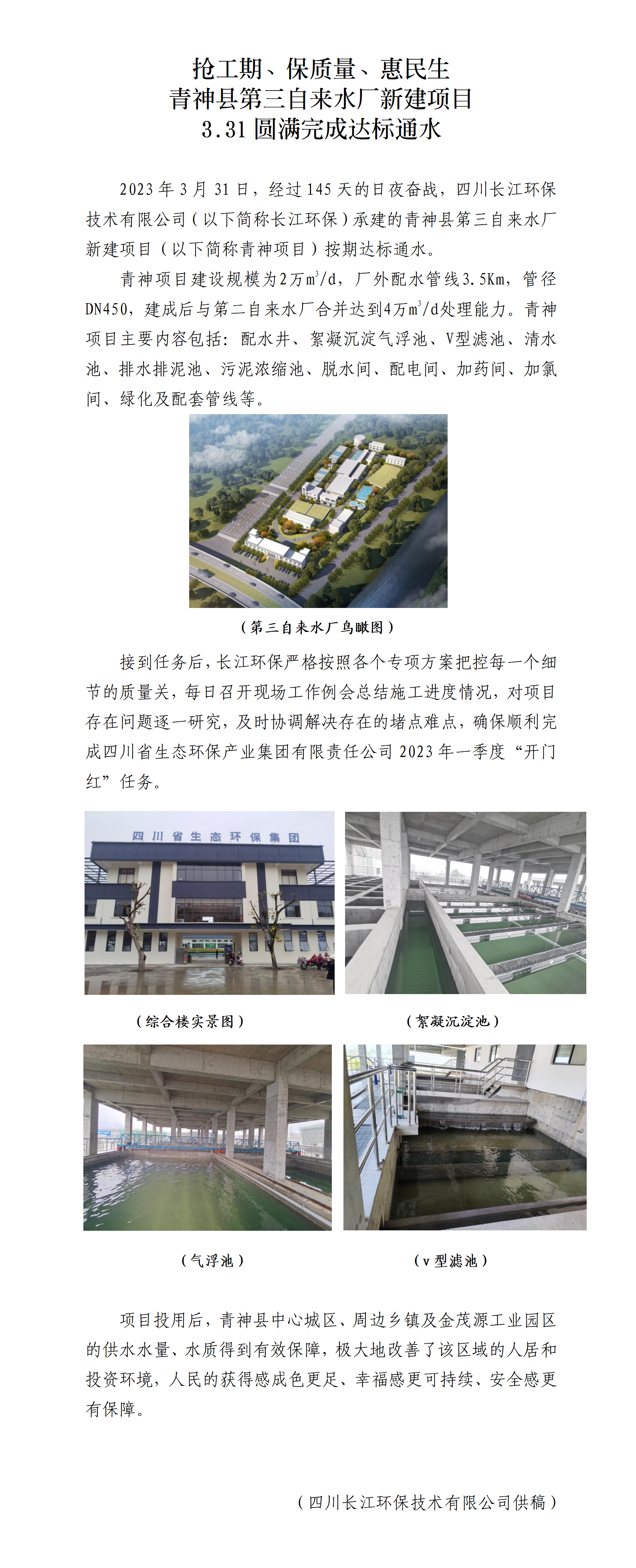 抢工期、保质量、惠民生青神县第三自来水厂新建项目3.31圆满完成达标通水